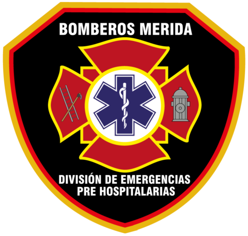 Tipografía y anillo perimetral: En la parte inferior, se puede ver "MÉRIDA", y en la bordura blanca, "CUERPO DE BOMBEROS". Estas dos inscripciones están separadas por dos estrellas de cinco puntas. La memoria, la dirección y el honor de los funcionarios que han trabajado con distinción para la entidad merideña están simbolizados por estas estrellas.